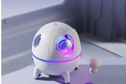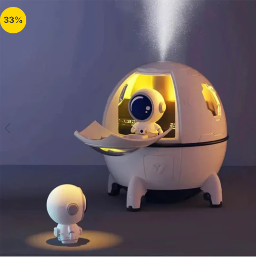 A stylish astronaut spaceship humidifier with aromatherapy function, LED night light, and purifier effect—ideal for home, office, or bedroom décor.
