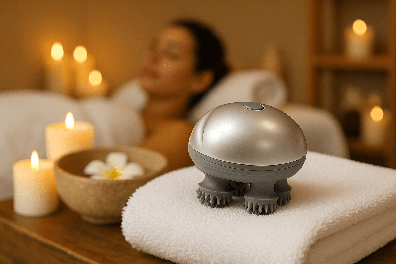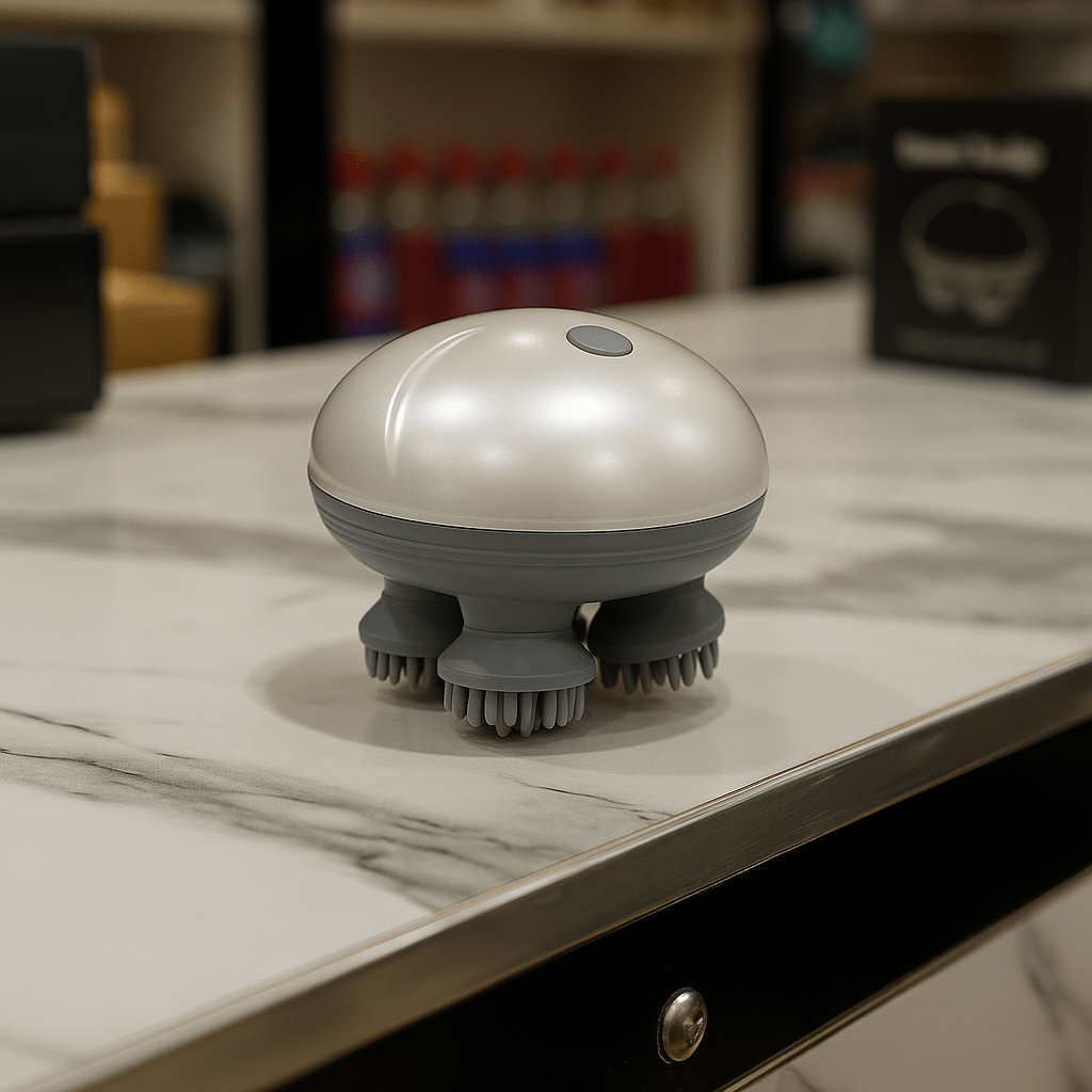Compact and rechargeable scalp massager designed to relieve stress, improve circulation, and support hair health. Ideal for home, travel, and office use.